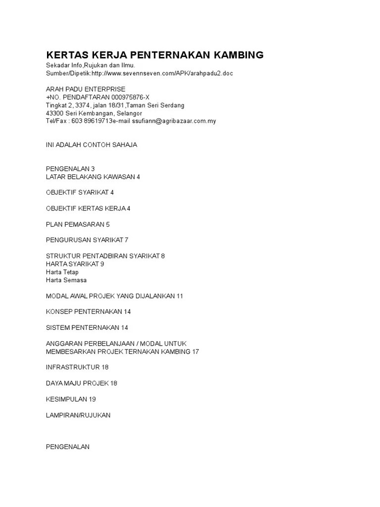 Kertas Kerja Penternakan Lembu - Contoh Projek Ternakan Kambing Pdf